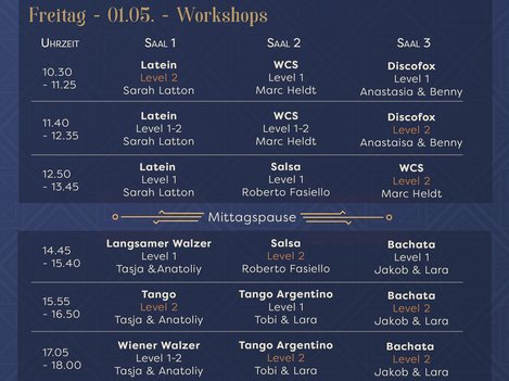 Saal 1: All in the Mix / Saal 2: West Coast Swing / Saal 3: Salsa & Bachata